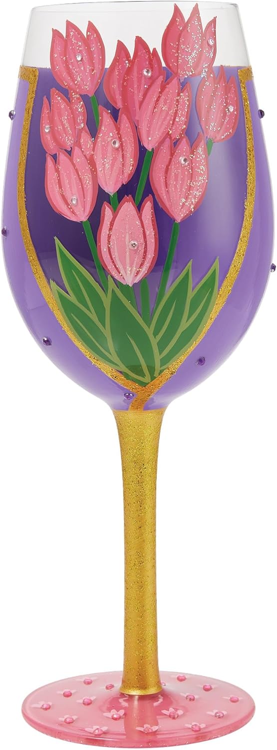Enesco Lolita Designs Happy Mother's Day Wrapped Up Hand-Painted Artisan Wine Glass, 15 Ounce, Multicolor