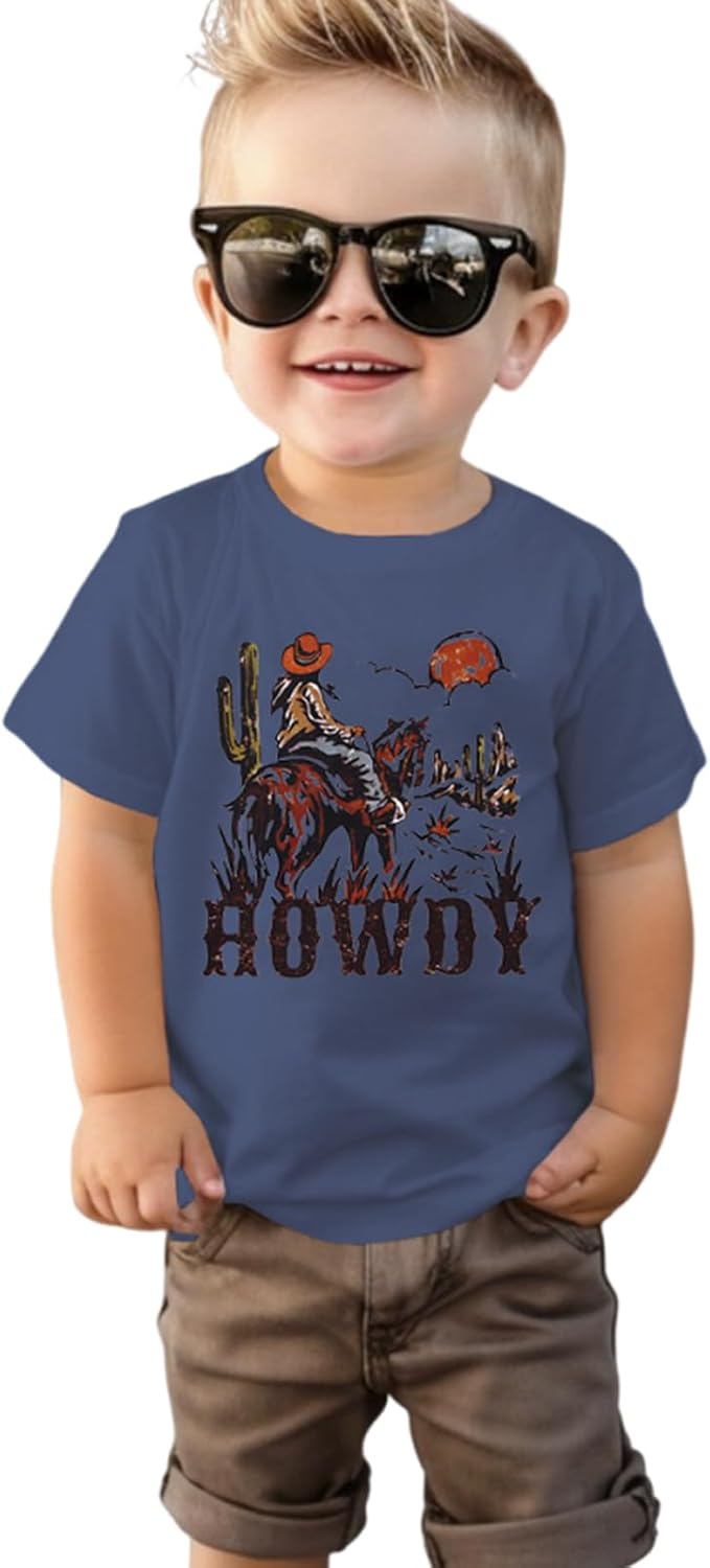 Ritatte Toddler Baby Boy Howdy Shirt Vintage Western Cowboy Graphic T-Shirt Country Short Sleeve Summer Cotton Tee Tops