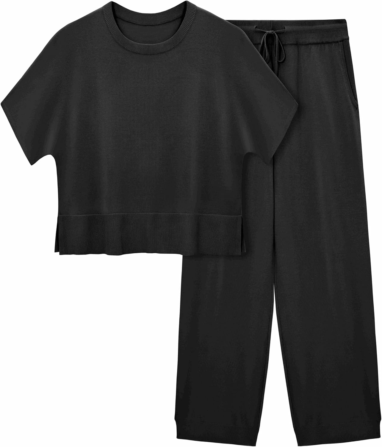 Fisoew Womens 2 Piece Outfits Sweater Sets Knit Split Crop Tops High Waisted Pants Lounge Set