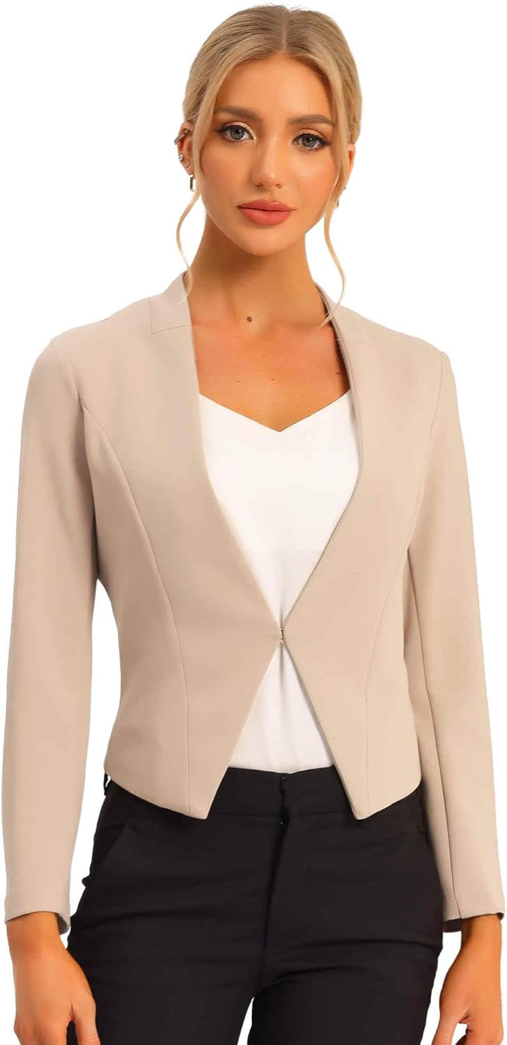 Allegra K Women's Work Office Blazer Collarless Business Casual Suit Jacket Cropped Blazer