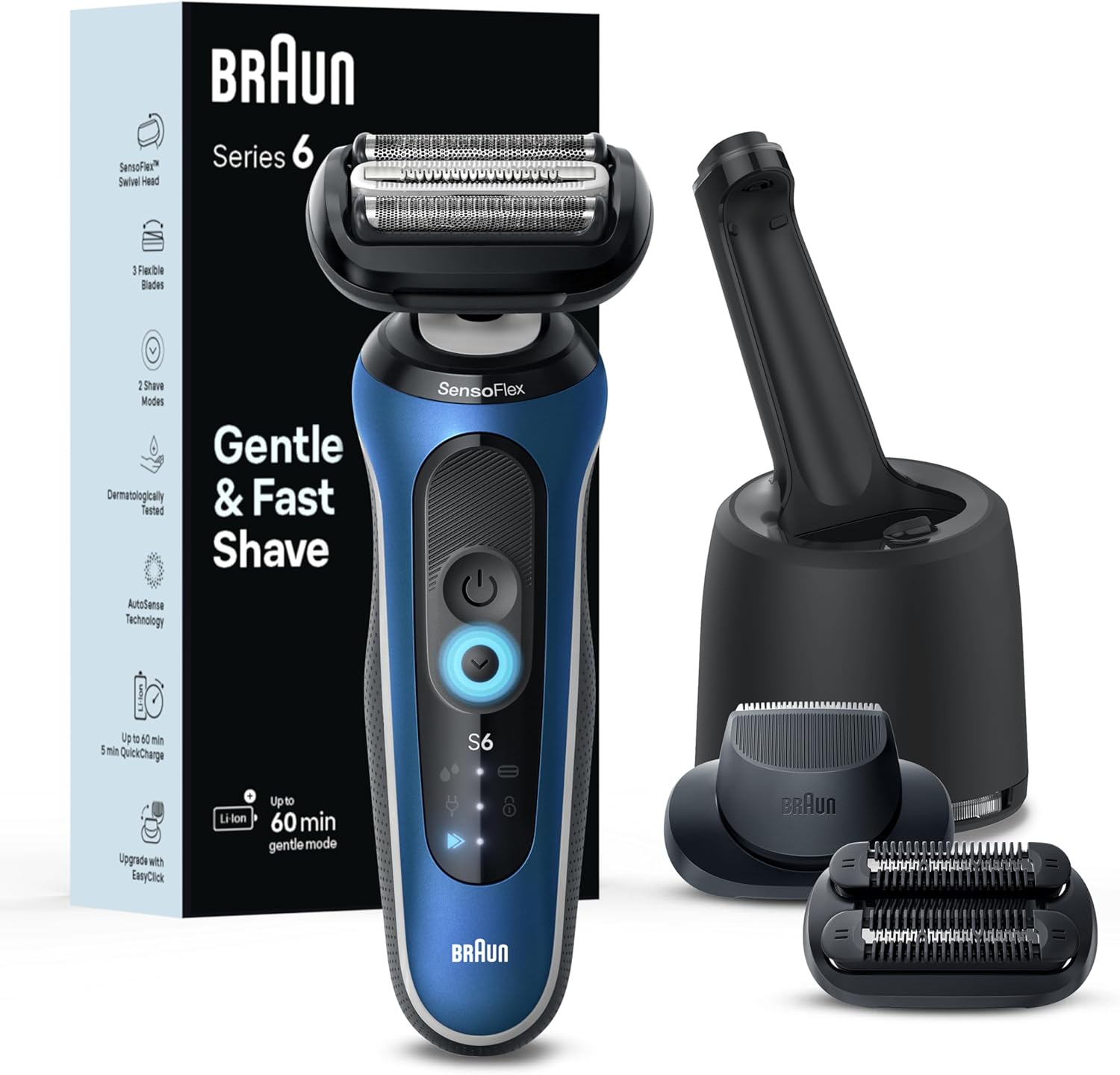 - GENTLE SHAVE FASTER*: Braun Series 6 Shaver: for a gentle shave, faster than ever before. Dermatologically tested, now with Sensitive SkinGuard (*vs previous Braun Series 6)