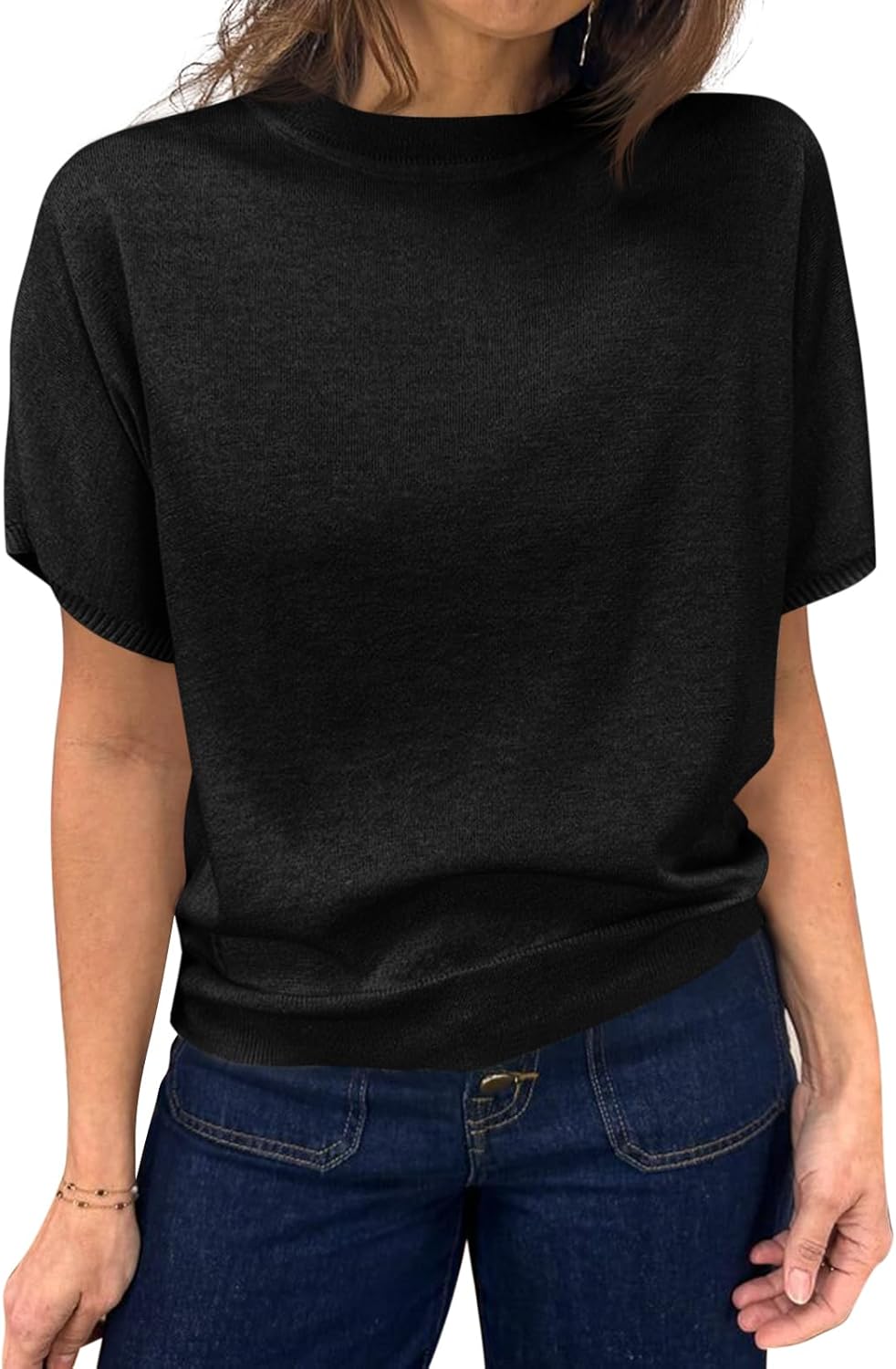 Saodimallsu Women's Short Sleeve Crew Neck Knit Pullover Sweater