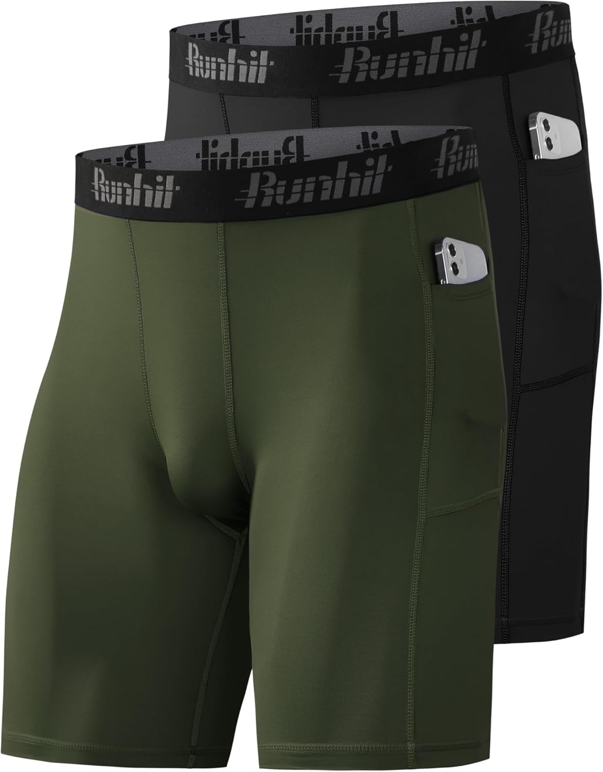 Runhit 2 Pack Mens Compression Shorts with Pocket, Spandex Athletic Workout Shorts, Performance Underwear for Running