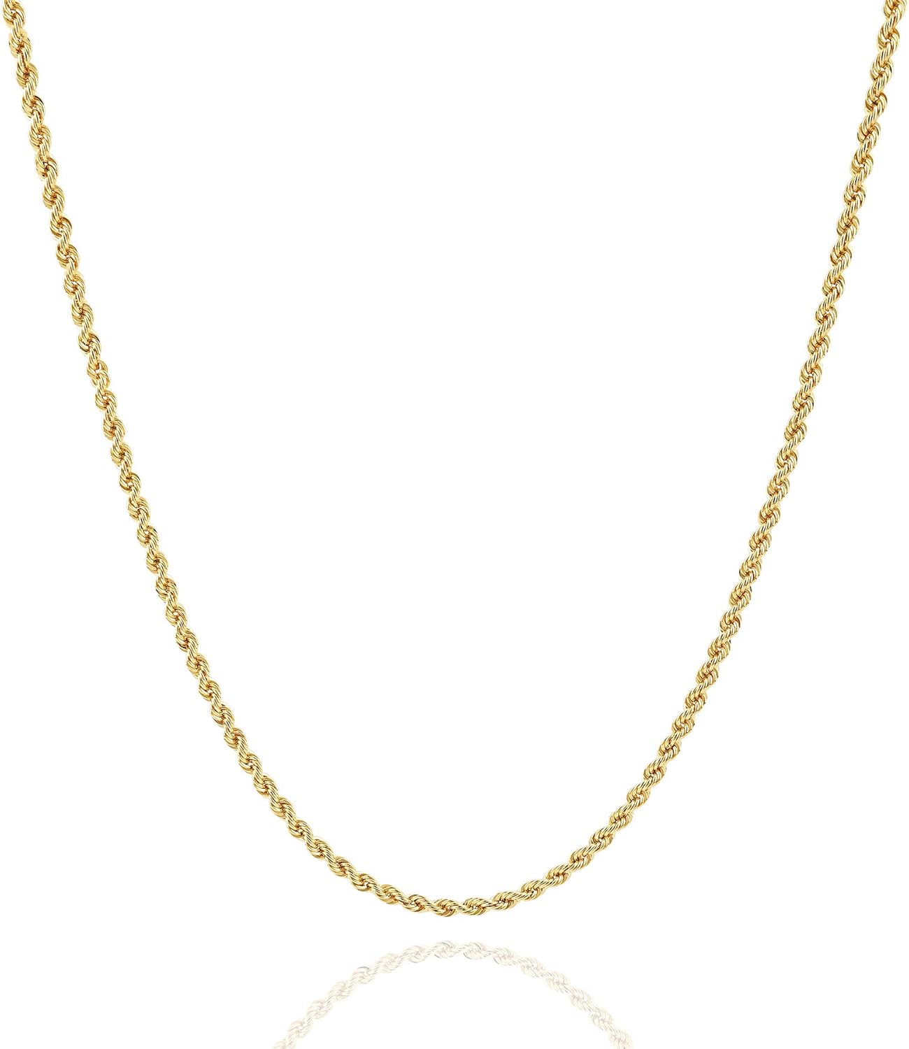 Jewelry Atelier Gold Chain Necklace Collection - 14K Solid Yellow Gold Filled Rope Chain Necklaces for Women and Men with Different Sizes (2.1mm, 2.7mm, or 3.8mm)