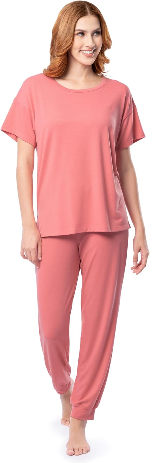 Fruit of the Loom womens Breathable Short Sleeve Top and Jogger Pant Sleep Pajama Set