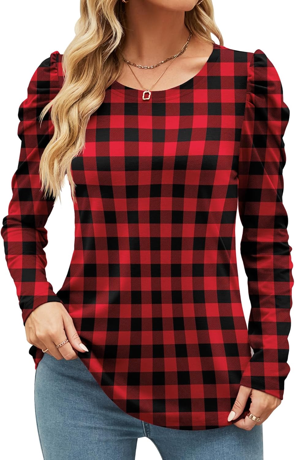 Ivicoer Women's Puff Sleeve Crew Neck Tunic Tops Casual Cute Loose Fit T Shirts Soft Work Floral Print Blouses S-XXL