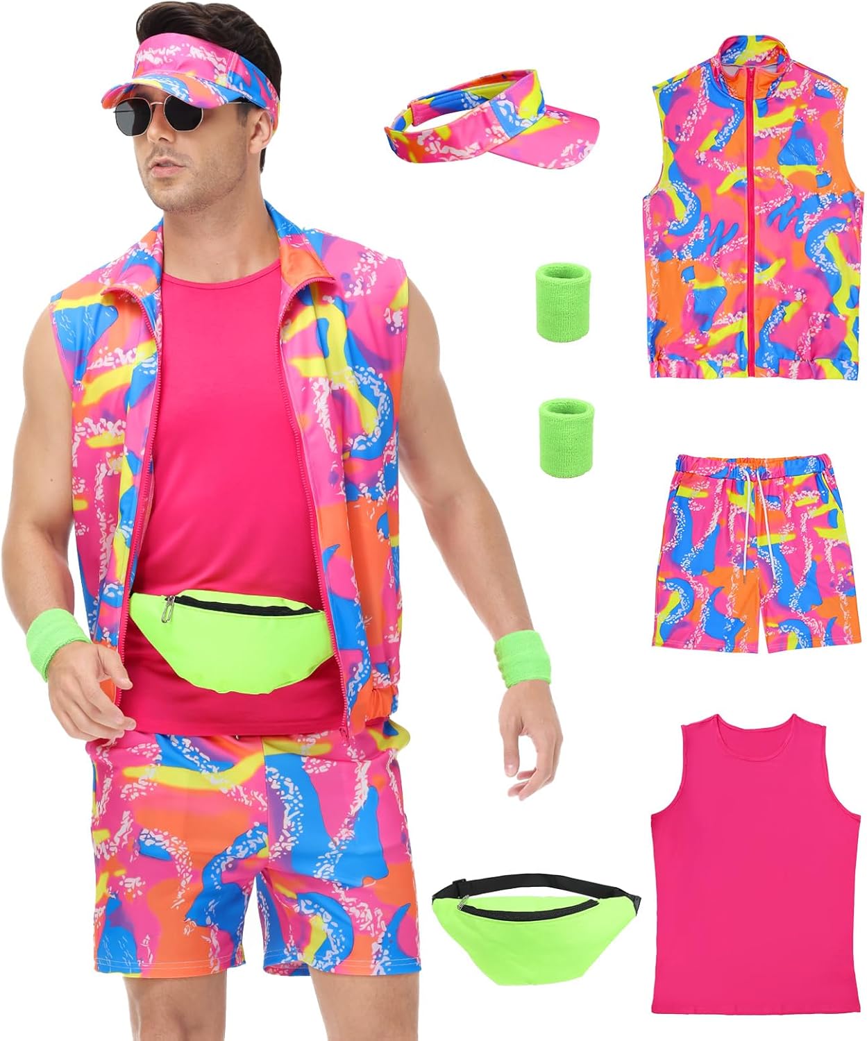 KBJALQ 80s 90s Outfit for Men, 80s Track Suit Men with Accessories -Couples Costumes for Halloween Carnival Cosplay