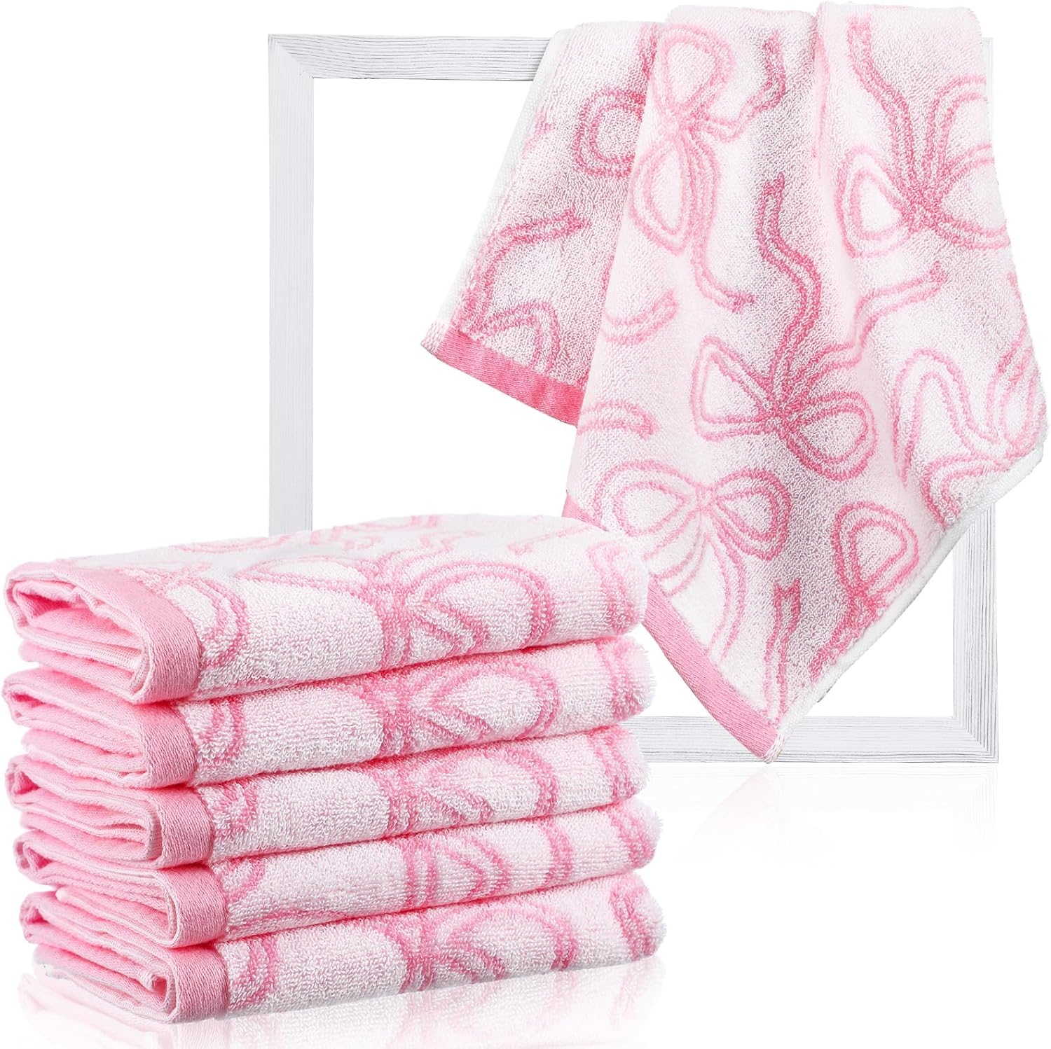 - Charming Bow Design and Color: featuring a delightful pink bow pattern, these coquette style bow washcloth come in an elegant white and pink color palette; These towels add a touch of elegance and charm to your bathroom or kitchen decor, making them a versatile addition to your home decor