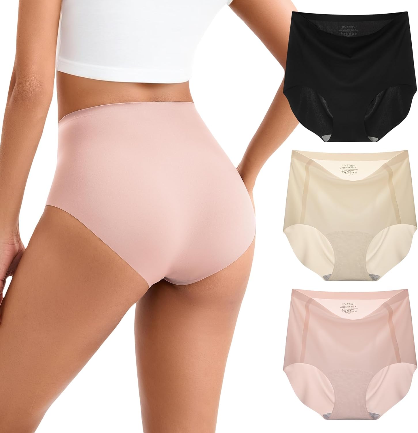 INNERSY Women's High Waist Seamless Underwear No Show Panties Full Coverage Briefs 3-Pack