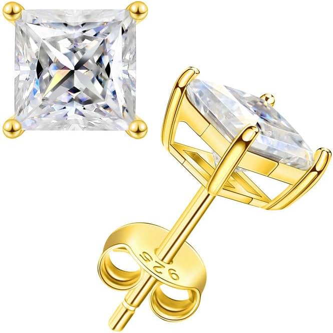 BREN Moissanite Earrings - 0.6ct-4ct D Color Lab Created Imitation Diamond Earrings Studs Handmade 925 Sterling Silver Earrings Solitaire Moissanite Stud Earrings for Women Christmas Gifts