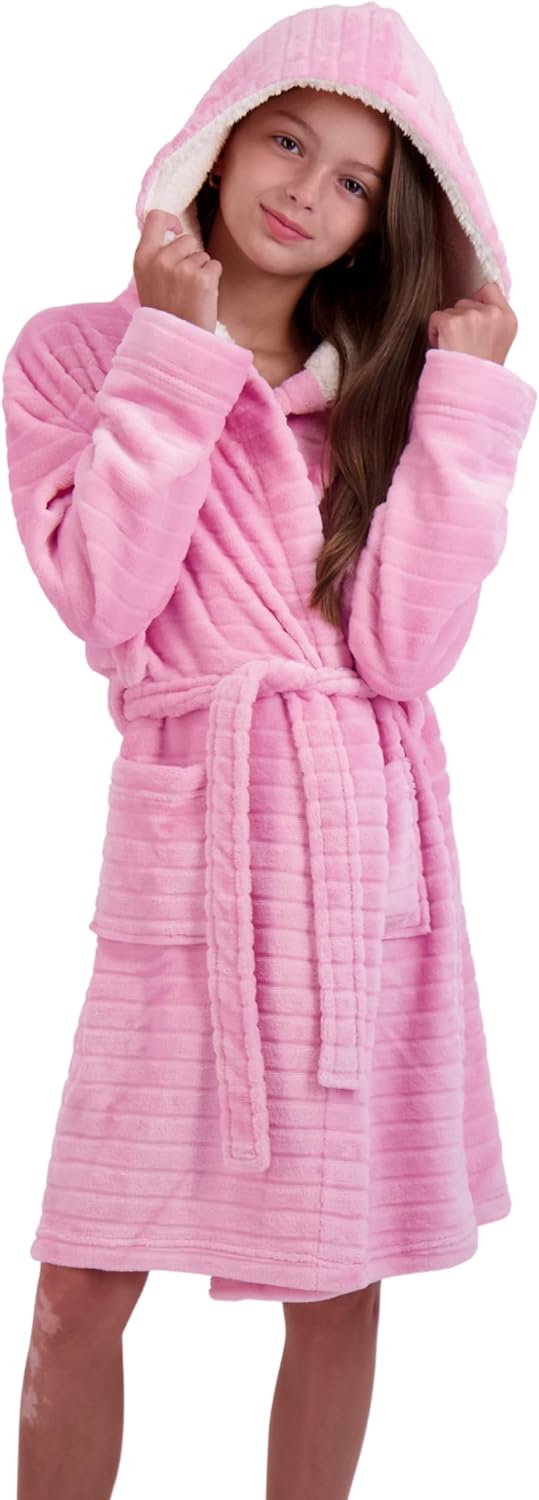 US Angels Plush Robe For Girls- Plush Winter PJ Robe With Pockets, Hoodie & Belt- Ultra-Soft Bathrobe