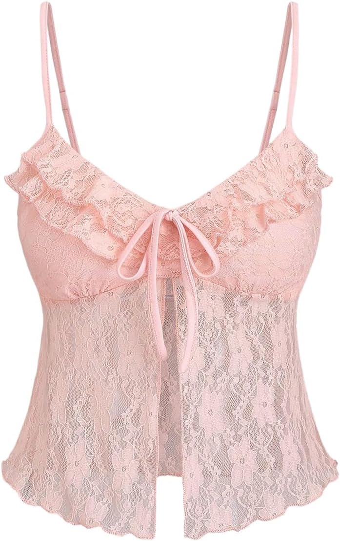 MakeMeChic Women's Lace Camisole Top Ruffle Going Out Tops Floral Spaghetti Strap Y2k Crop Tops