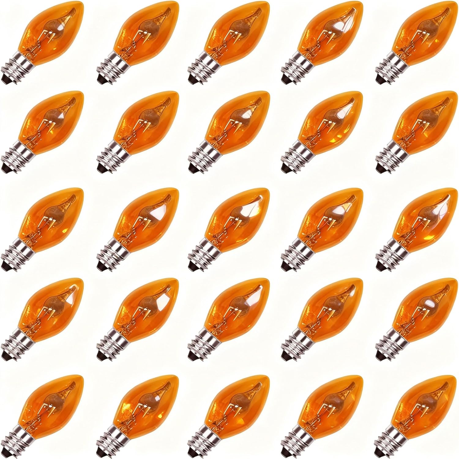 25 Pack Flickering Flame Light Bulbs, C7 Orange Light Bulbs 1 watt, Flame Christmas Light Bulb for Indoor Outdoor Christmas String Light Party Decor