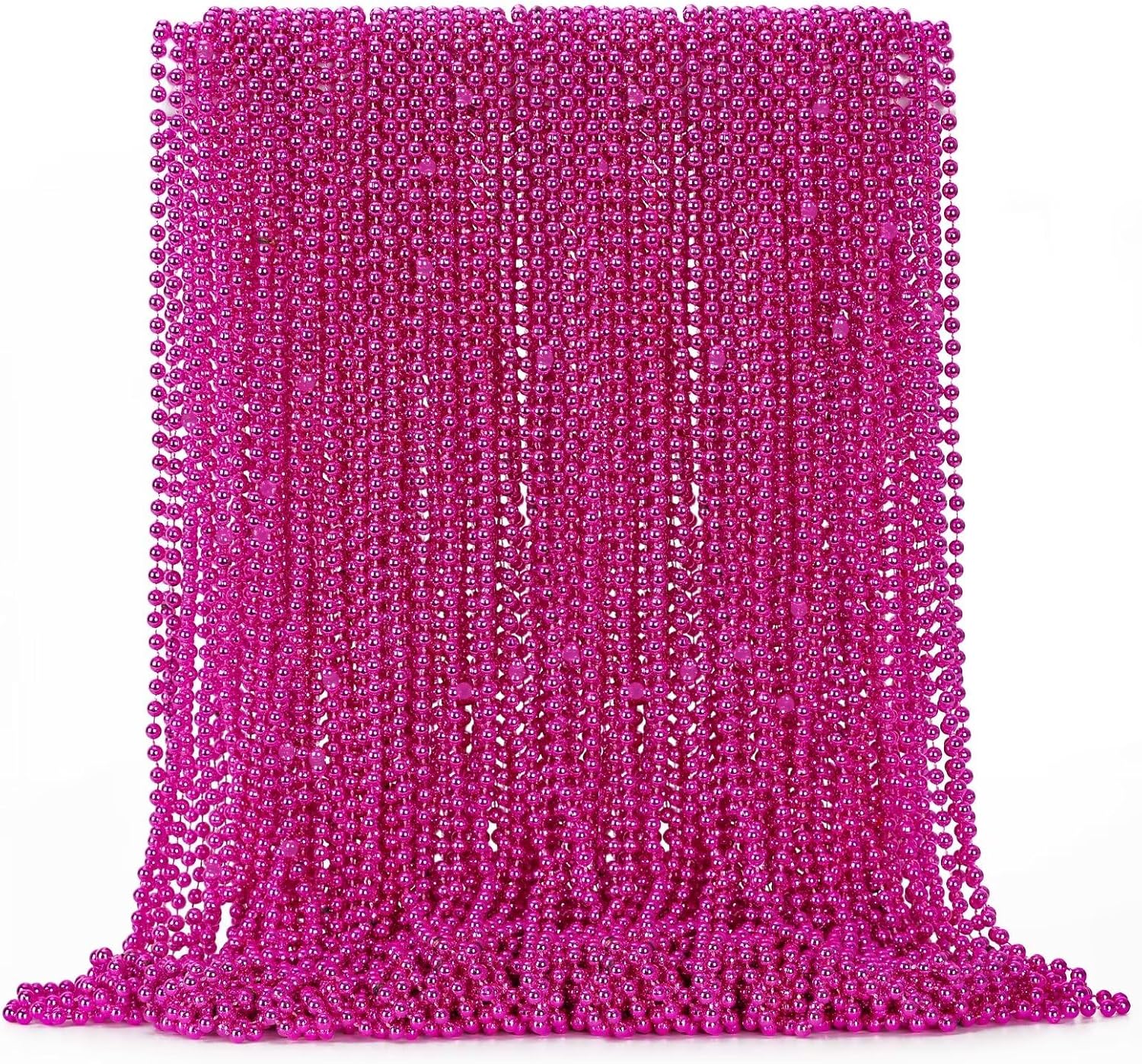 72PCS Bead Necklace, 33" Rose Red Bead Necklaces Bulk, Mardi Gras Beads Necklace Costume, Festival Parade Throw Accessories for Wedding Birthday Gender Reveal Party Events Supplies Decorations