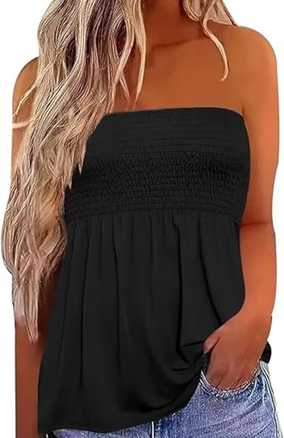 Womens Smocked Strapless Bandeau Tank Tops Floral Tube Tops Backless Bandeau Tunic Tops Sleeveless Shirts