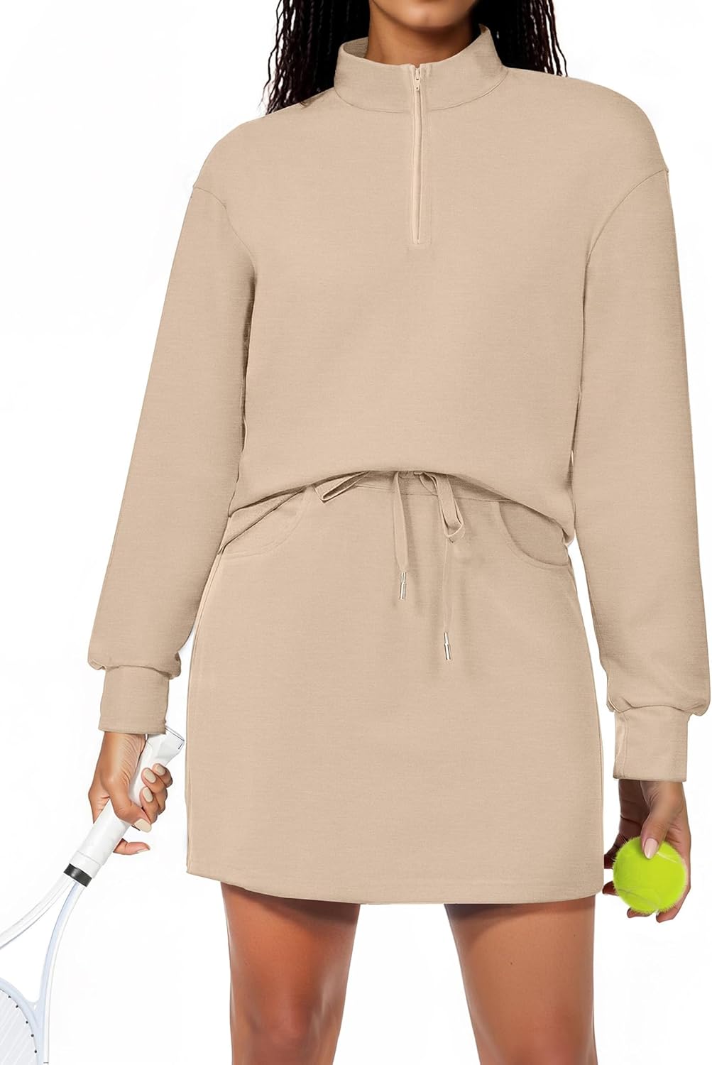 SHESHOW 2 Piece Skirt Sets for Women Tennis Skorts Quarter Zipper Sweatshirt Matching Set Tracksuit with Pockets