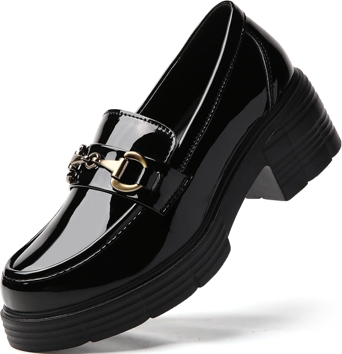 Loafers for Women Women's Penny Platform Chunky Loafers Slip-Ons with Gold Buckle C...