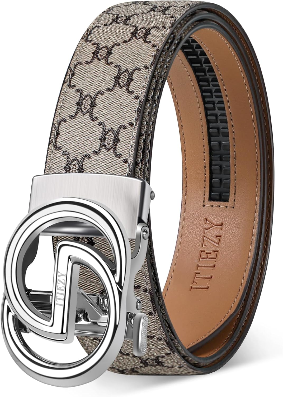 ITIEZY Ratchet Belts for Men - Leather Click Belt for Casual Dress 1 3/8", Mens Adjustable Belt Trim to Fit