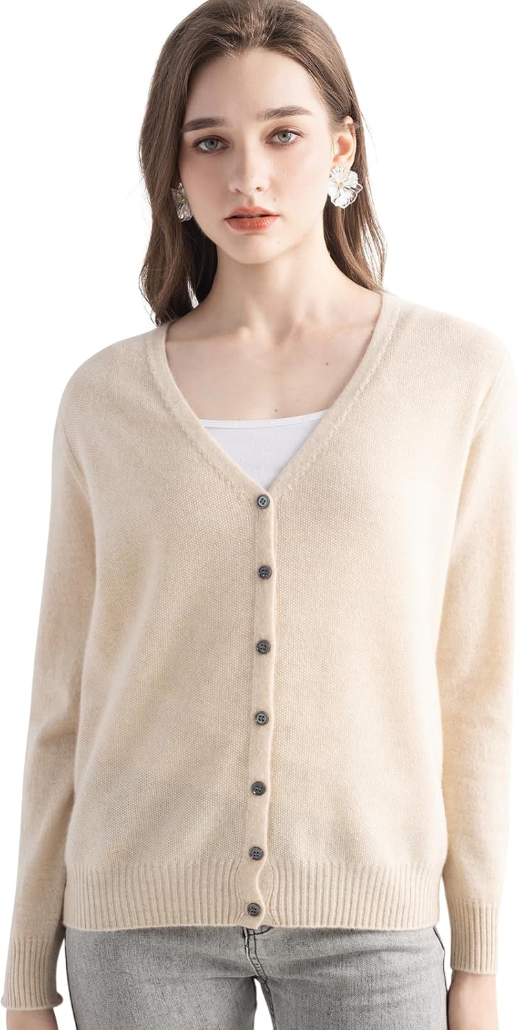 Chanyarn Women's 100% Pure Cashmere Cardigan V-Neck Long Sleeve 2025 Fall Winter Warm Soft Knit Cardigan Sweater