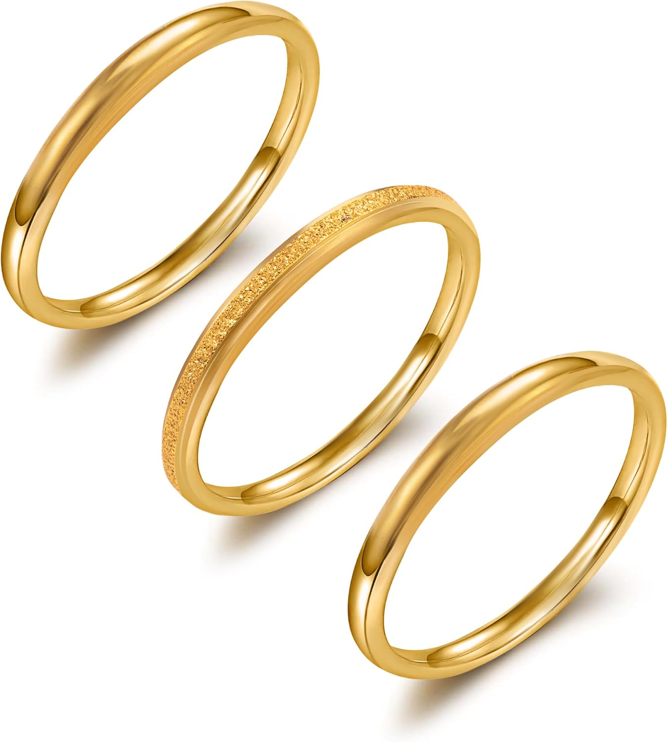 FPH 18K Gold Filled Stacking Rings for Women, Non-Tarnish Dainty 2mm Thin Ring Set, Wedding Engagement Stackable Jewelry Gift Size 6-10