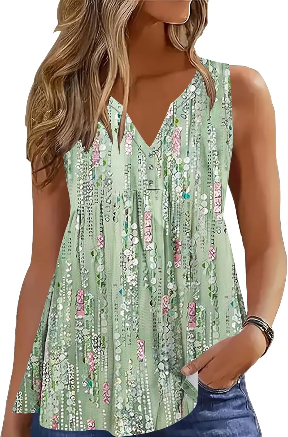 ETCYY Women Tank Tops 2026 Spring Clothes Summer V Neck Pleated Shirts Button Down Dressy Casual Sleeveless Blouse