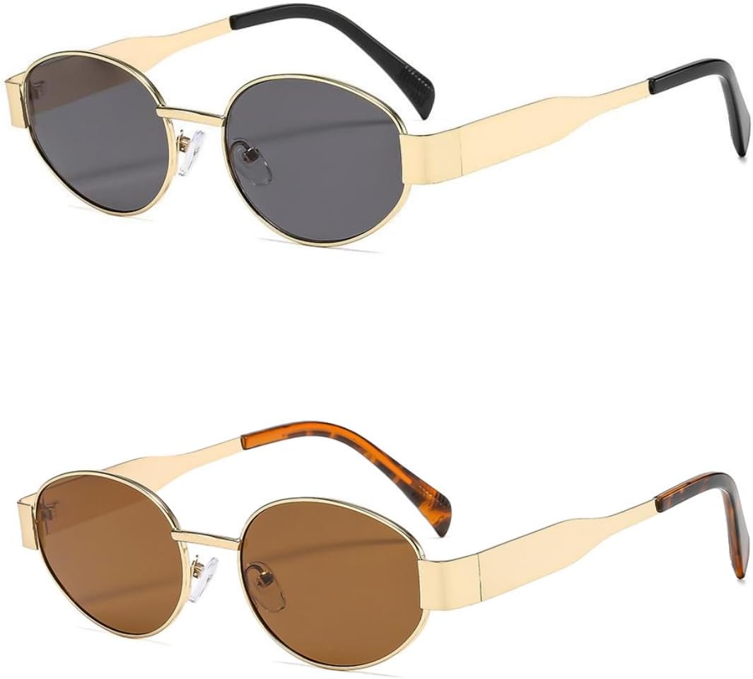 Retro Oval Sunglasses for Women Men 90s Trendy Gold Metal Frame Sun Glasses Small Round Classic Shades
