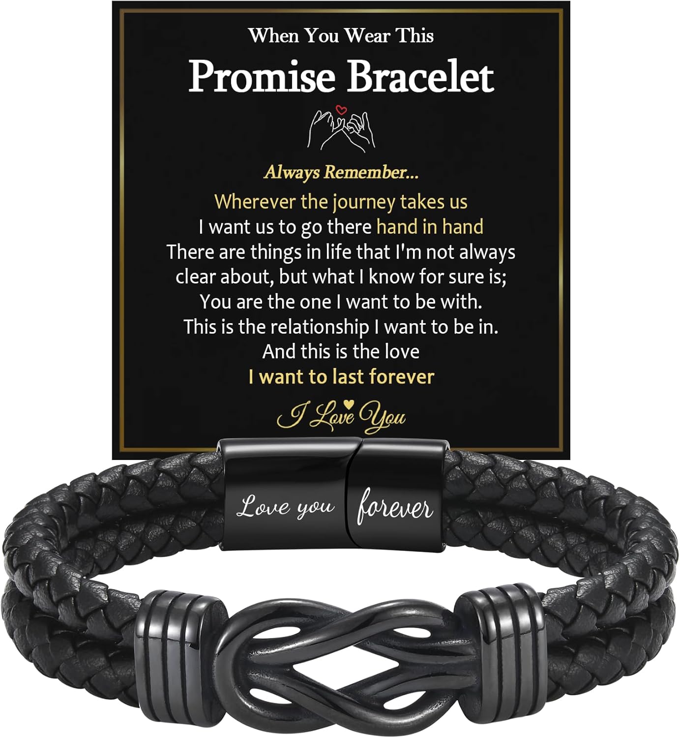 EPIRORA Gifts for Men- 8.5" Black Braided Leather Infinity Knot Bracelets for Him Husband Boyfriend, Personalized Mens Bracelet Jewelry Gift for Birthday Christmas Anniversary Valentine's Day