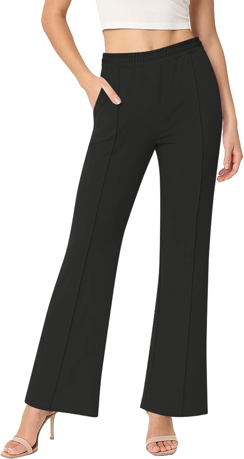 Women's High Waisted Flare Pants Stretchy Business Casual Holiday Trousers with Pockets for Women Trendy(Black, Medium)