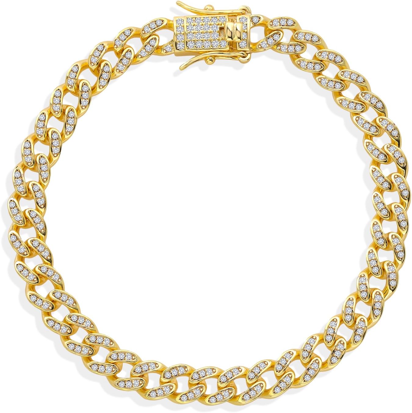Gem Stone King 1.00 Cttw White Moissanite Curb Link Chain Bracelet For Women In 18K Yellow Gold Plated | Available In 6.5/7/7.5 Inch | With Safety Lock Clasp
