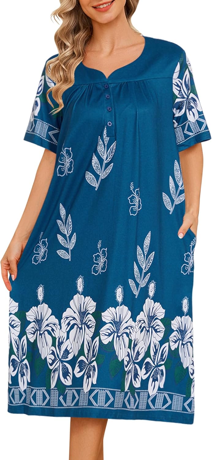 House Dresses for Women Floral Print Mumu Nightgowns Sleepwears with Pockets Lounge Dress