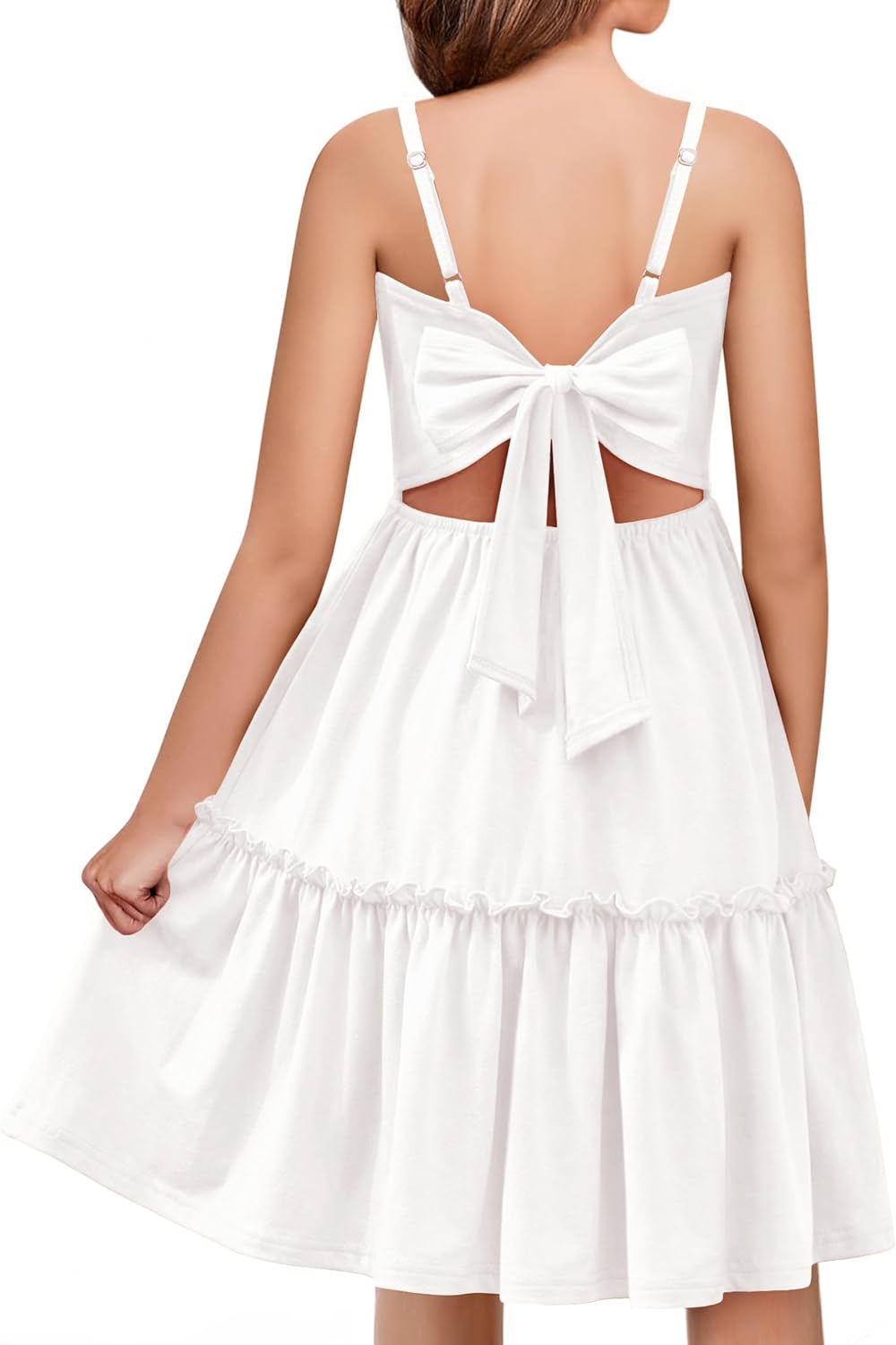 Arshiner Girls Tie Back Dress Spaghetti Strap Ruffle Hem Casual Summer Beach Sundress with Pockets