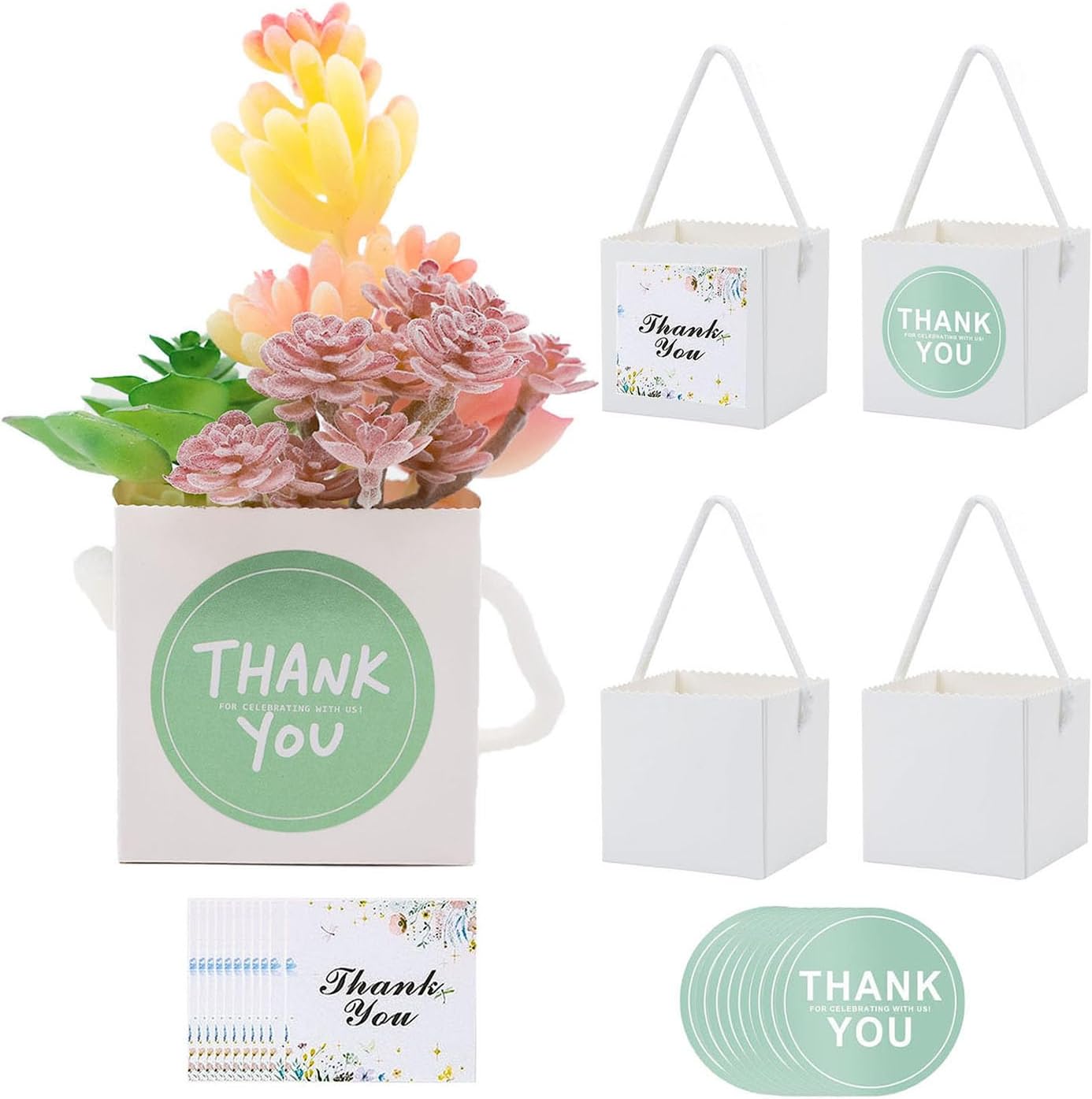 ALLWSLucky 50 PCS Succulent Wrap Bags with 100 PCS Thank You Stickers, Fits 2.36 Inch Pots Succulent Gift Box Basket with Handles for Wedding Shower Party Favors Ideas