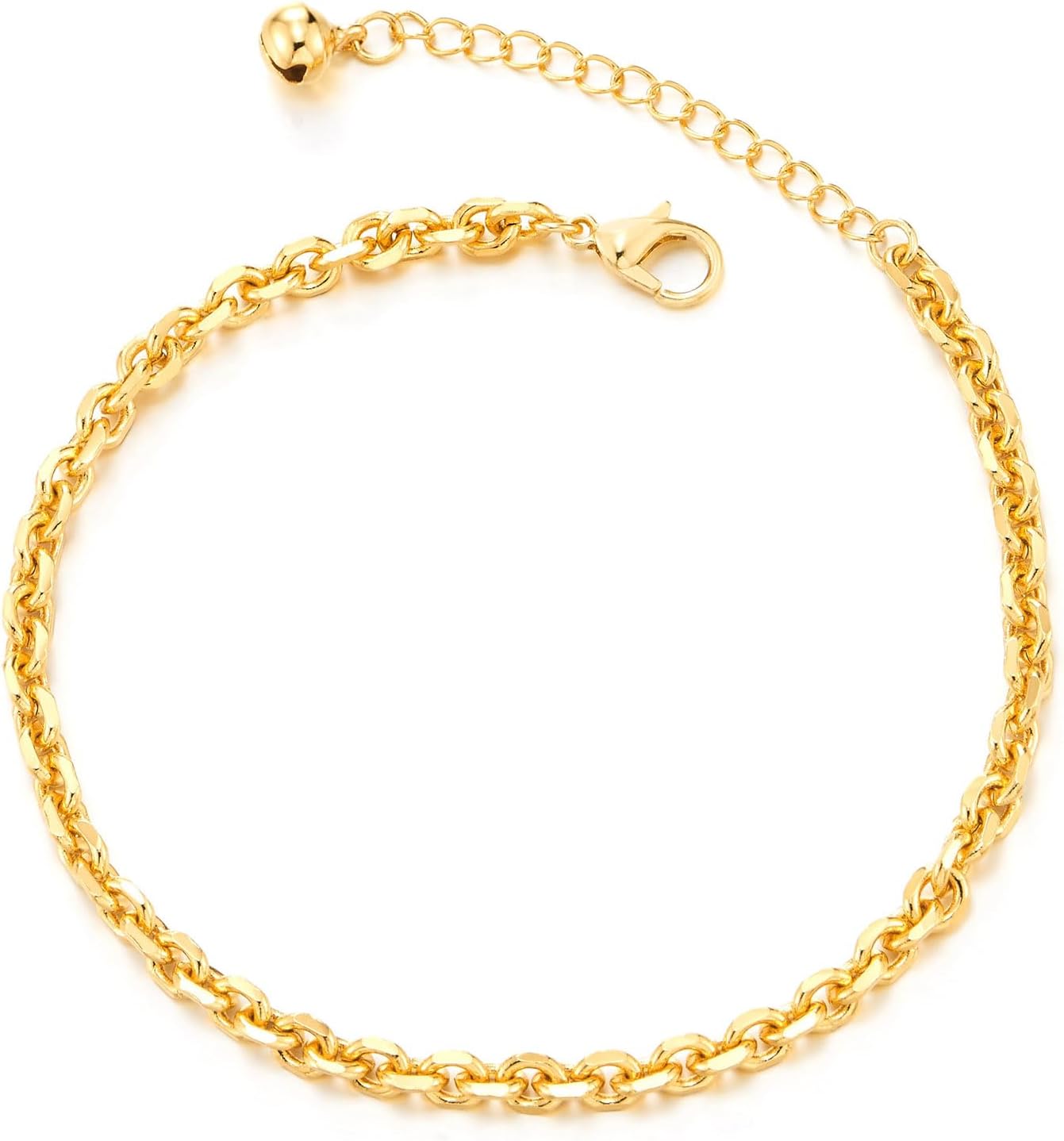 COOLSTEELANDBEYOND Elegant 18K Gold-Plated Chain Anklet Delicate Cable Link with Adjustable Extender Lightweight Everyday Jewelry