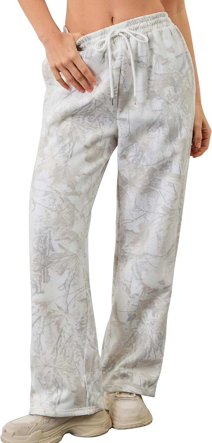 Camo Pants for Women Wide Leg High Waist Drawstring Camo Sweatpants Fleece Baggy Causal Jogger Workout Pants