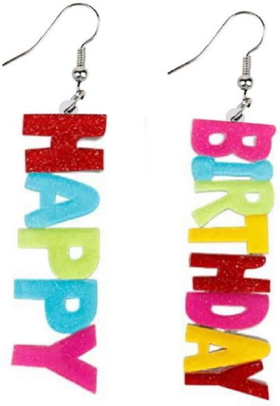 Birthday Earrings Shinning Glitter HAPPY BIRTHDAY Letter Drop Earrings for Women Colorful Birthday Candy Acrylic Ball Beads Dangle Earrings Celebration Birthday Party Jewelry Gifts
