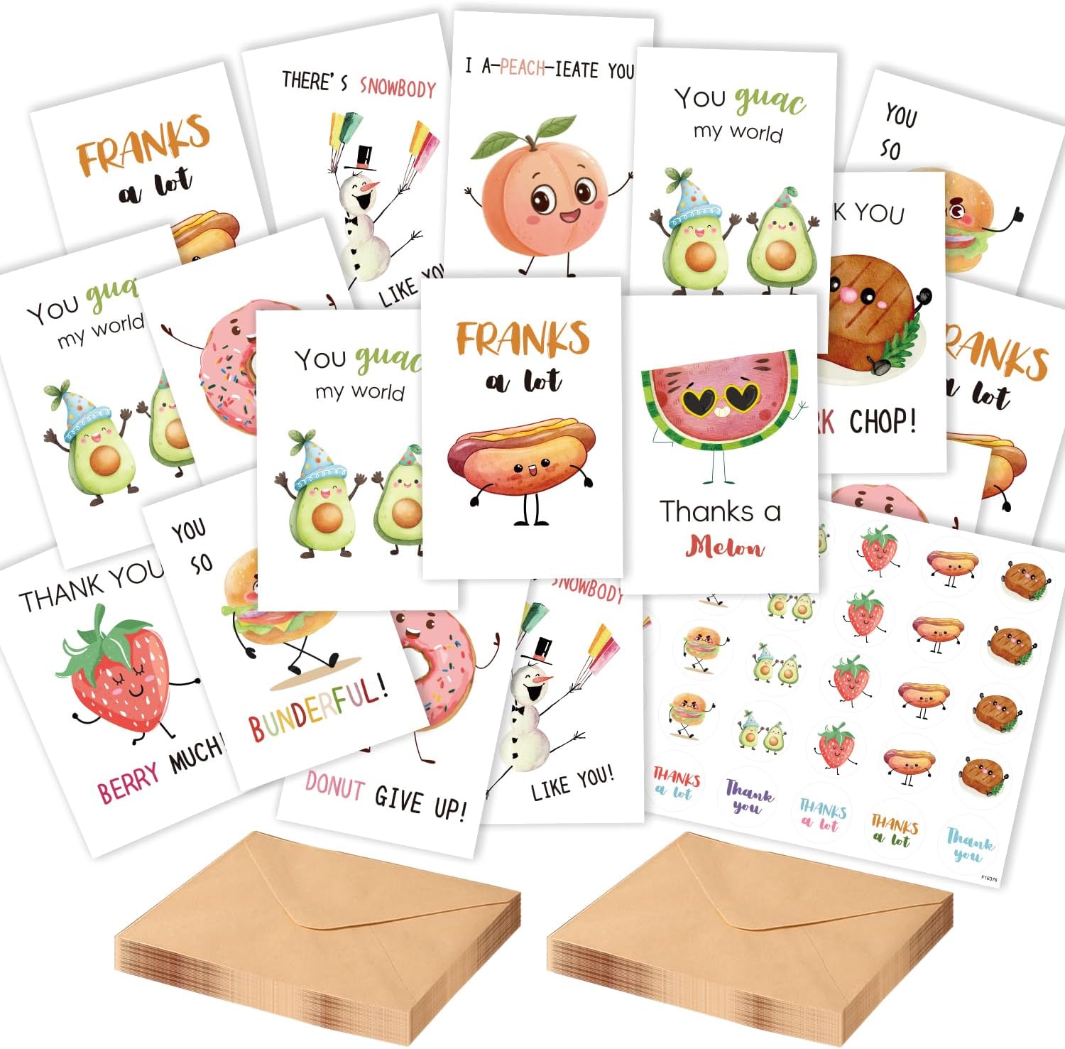 - Funny Thank You Cards with Envelopes - This box set of funny birthday cards includes 36 pcs cards (4"x6") , 36 envelopes, 45 stickers and a beautiful box , featuring 9 different designs to express gratitude in a fun and creative way. Perfect for weddings, teachers, team members, staff, volunteers, customers, or engagements.