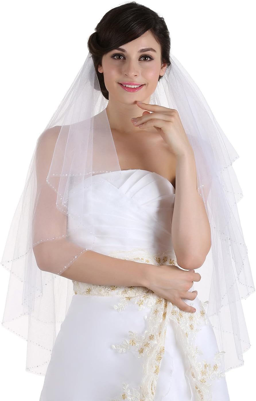 SAMKY 2T 2 Tier Clear Crystal Beaded Bridal Wedding Veil