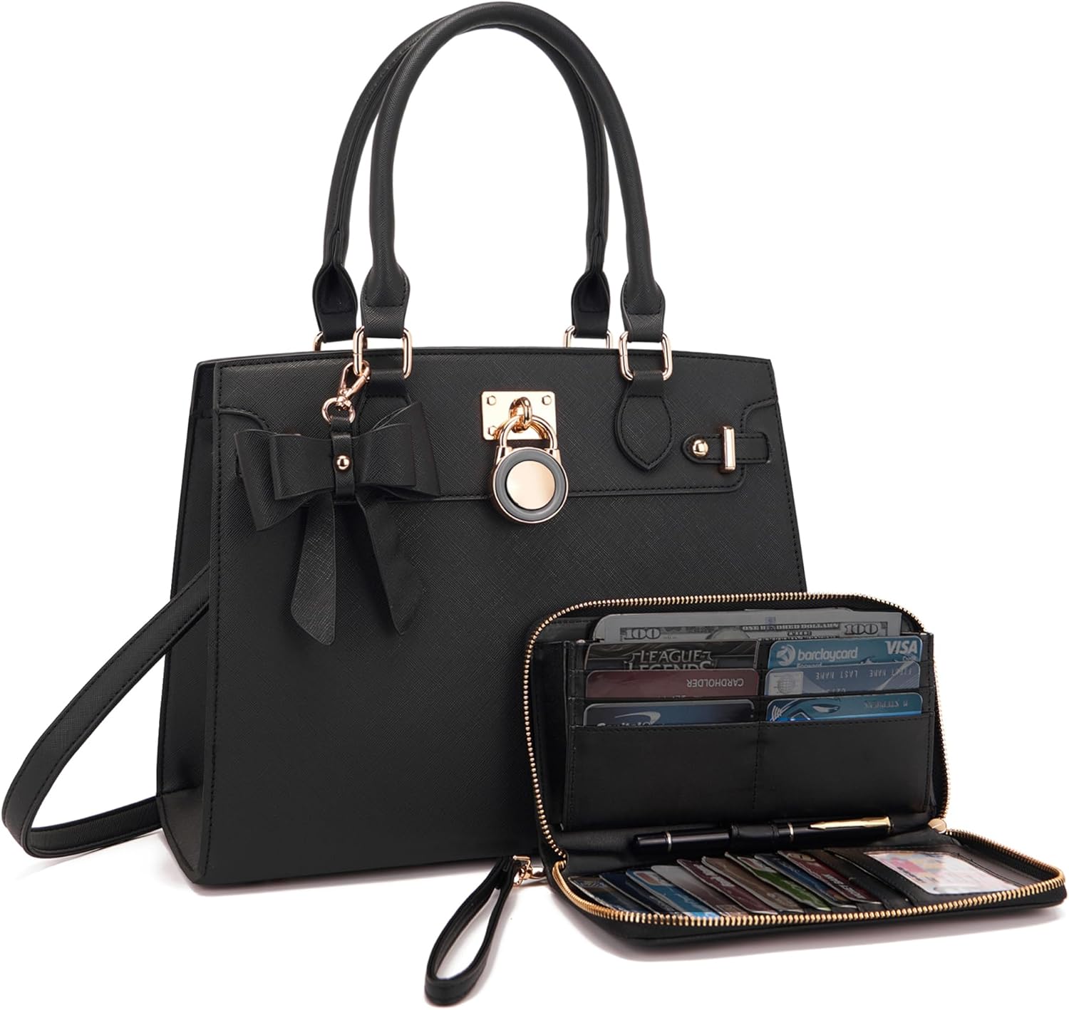 Qiyuer Women Handbags Set Top Handle Satchel Tote Shoulder Work Bag Ladies Purses With Matching Clutch Wallet 2PCS