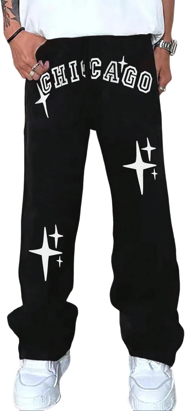 ZAFUL Mens Baggy Wide Leg Sweatpants Casual Straight Drawstring Open Bottom Loose Fit Workout Jogger Track Pants with Pockets(3-Black, L)