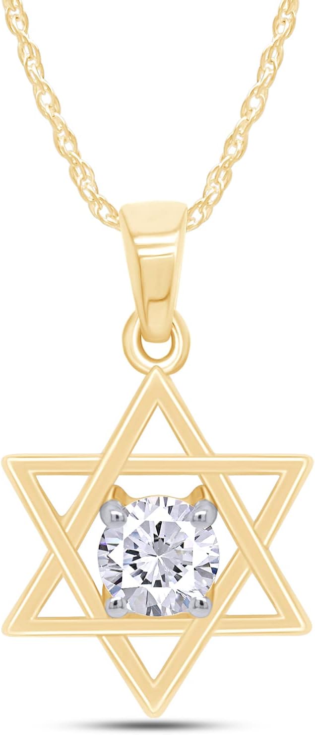 AFFY Star of David Pendant Necklace for Women, Round Cut White Cubic Zirconia in 14K Gold Over Sterling Silver with 18" Rope Chain, Jewish Religious Jewelry Gift