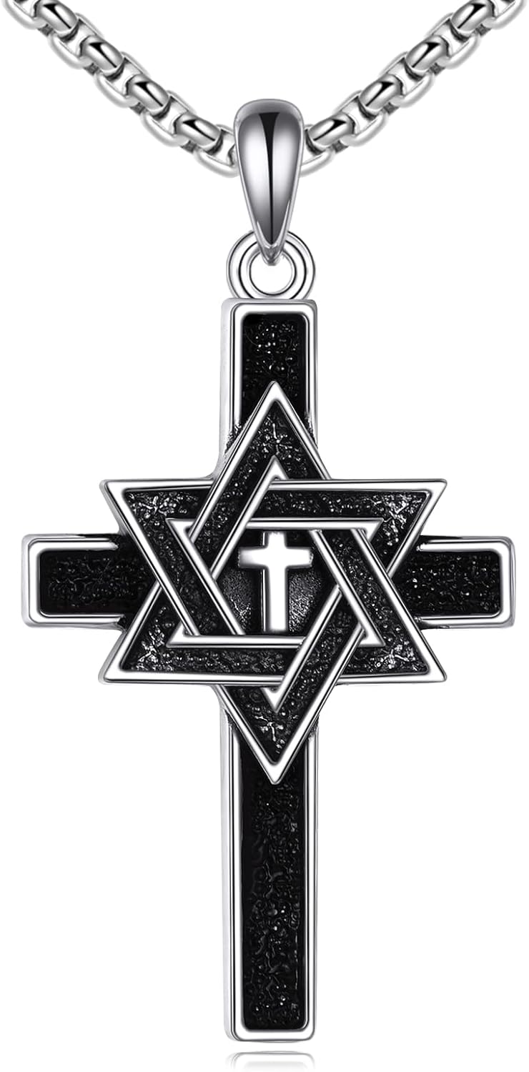 Star of David Cross Necklace Sterling Silver Jewish Star Pendant Necklace Judeo Christian Religious Jewelry Gift for Men Women