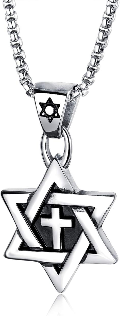 Rehoboth Star of David Six Pointed Megan Cross Pendant Necklaces for Men or Women Stainless Steel Chain 24 Inch