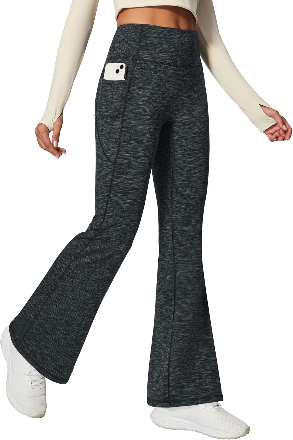 Heathyoga Fleece Lined Pants Women Yoga Pants with Pockets for Women Thermal Pants High Waist Flare Leggings for Winter