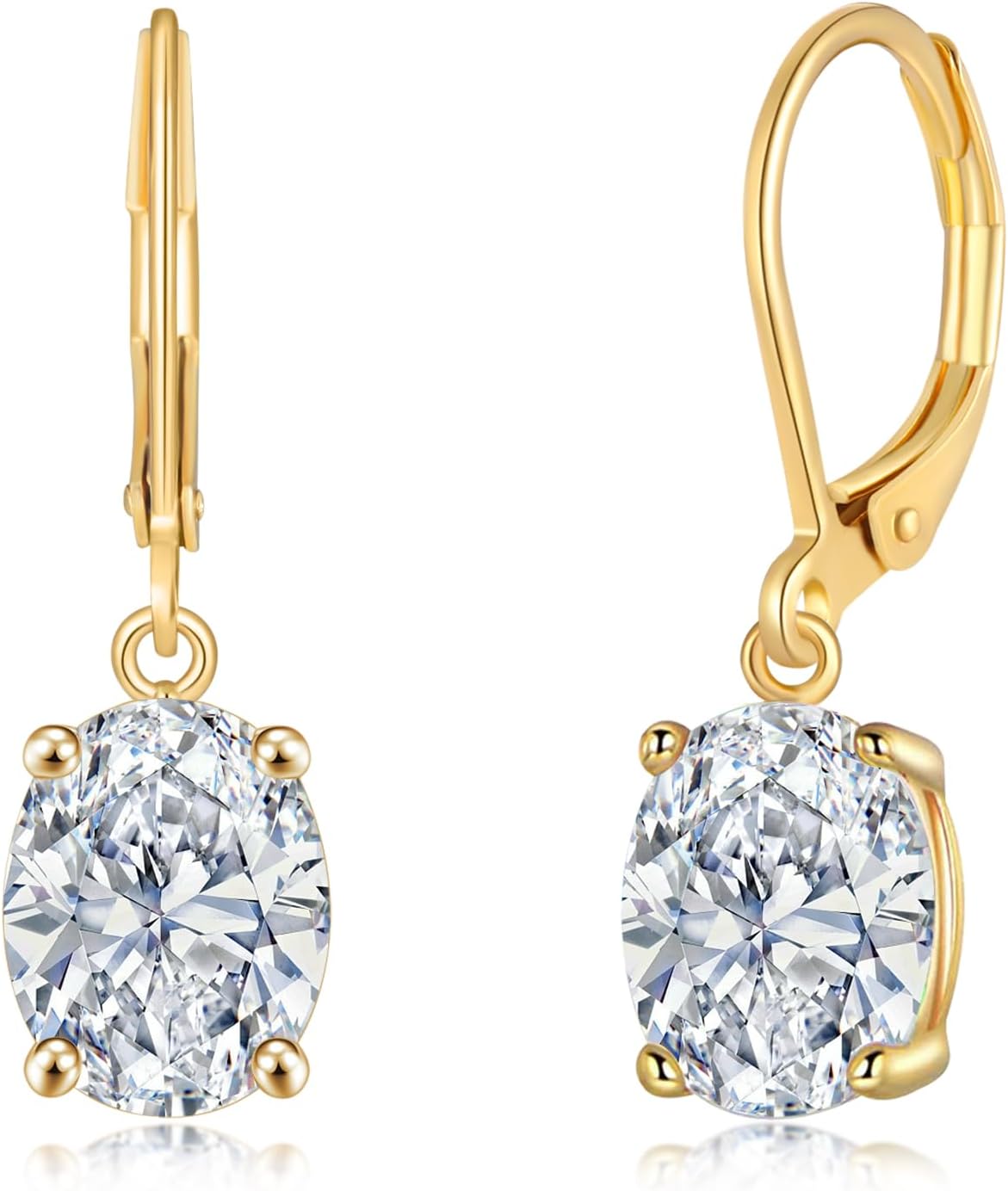 CiNily Cut-Oval Leverback Dangle Earrings for Women Hypoallergenic 14k White/Gold Plated Cubic Zircon Hanging Lever Earrings Lightweight Summer Drop Earrings Wedding Birthday Gifts Jewelry