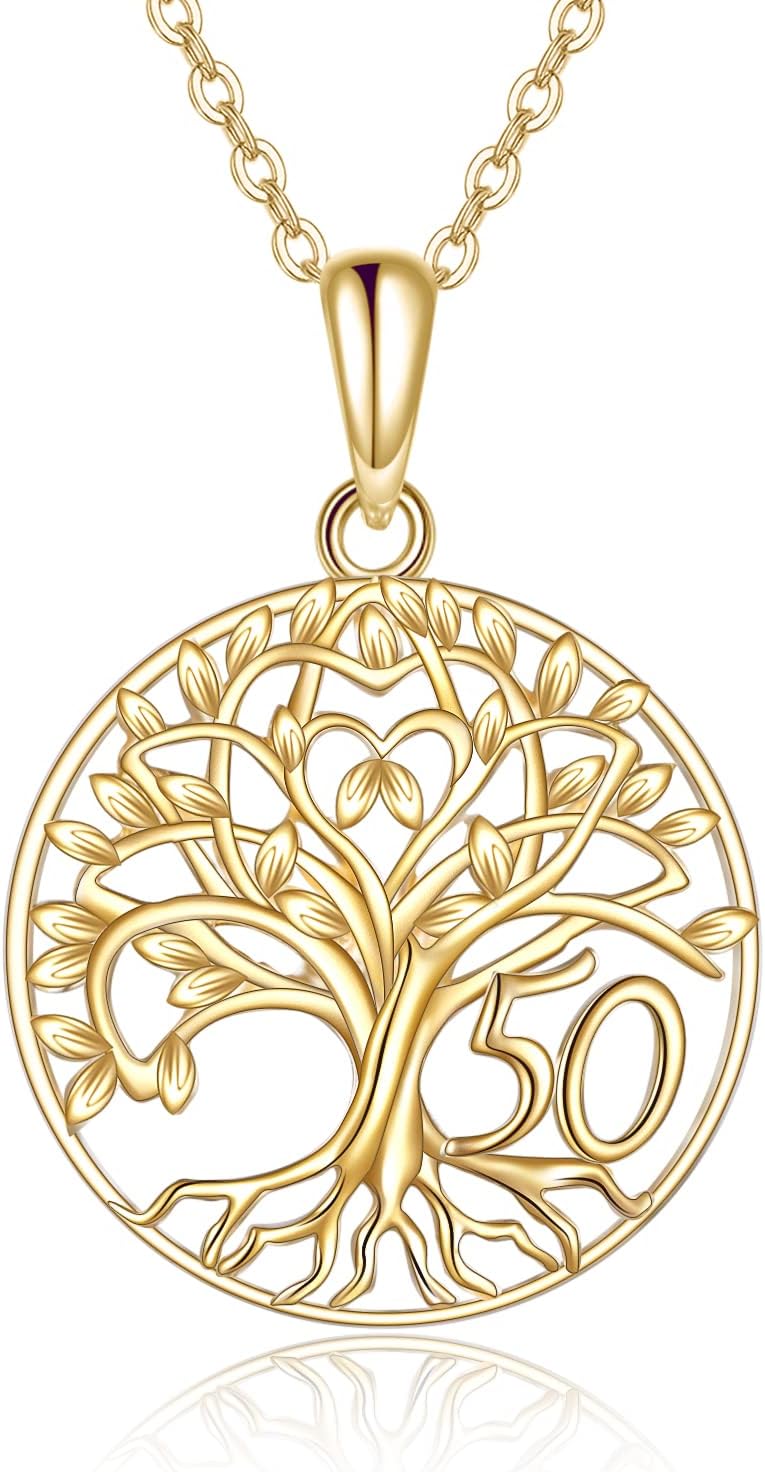 KECHO 14K Solid Gold 16/18/30/40/50/60/70/80/90th Birthday Gifts for Women Tree of Life Necklace Jewelry for Mother Grandma