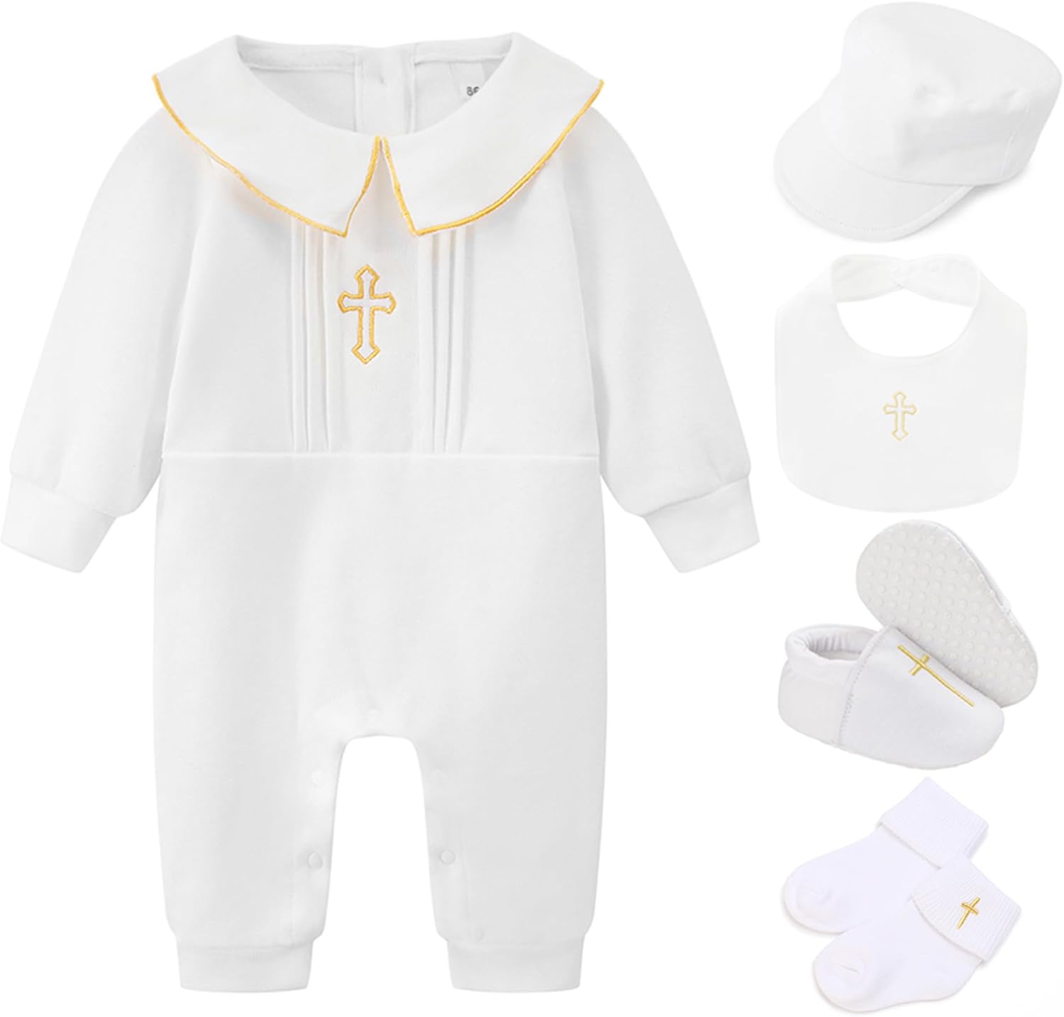Baby Boy Girl Baptism Outfit Infant Christening Outfit with Shoes & Socks 5Pcs