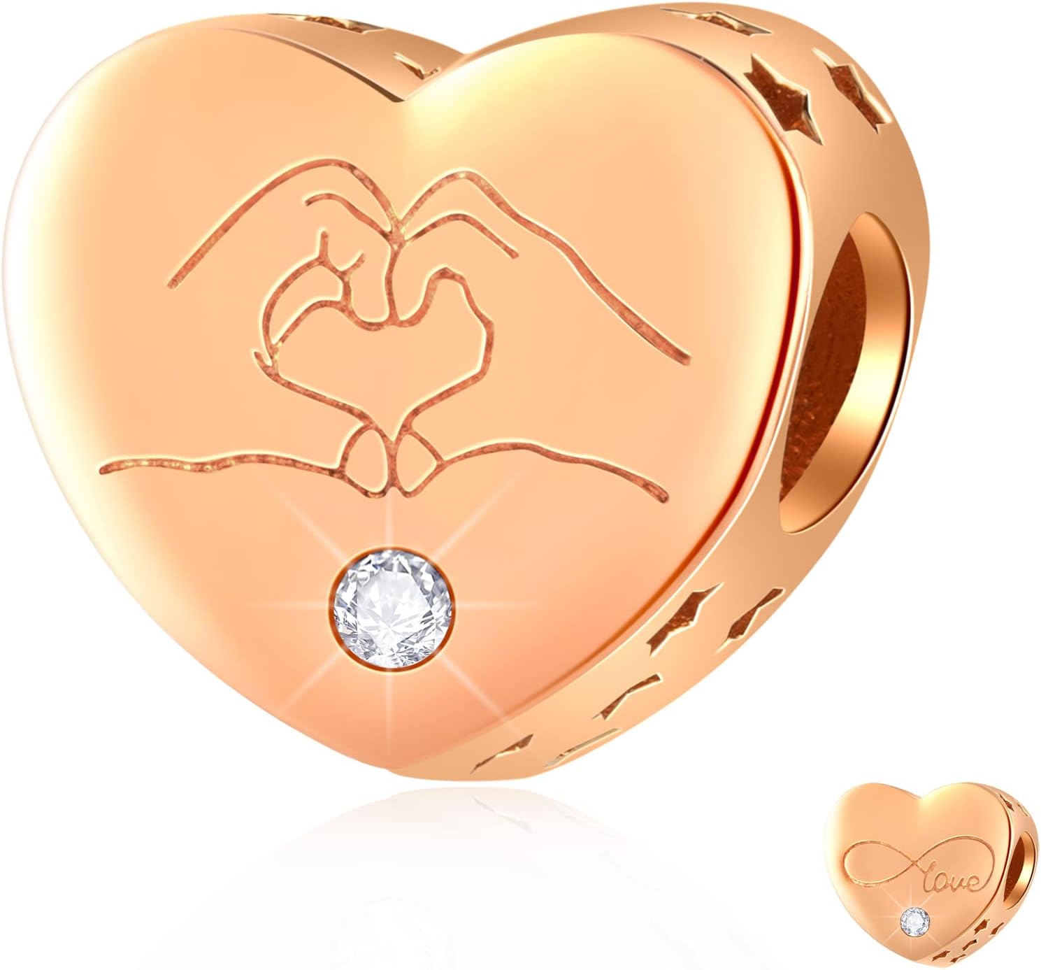 Rose Gold I Love You in Your Hands Gesture Charms fit Pandora Mothers Day Bracelet, 925 Sterling Silver Infinity Love Heart Finger Beads with Stars, Gifts for Dad/Best Mum/Grandma