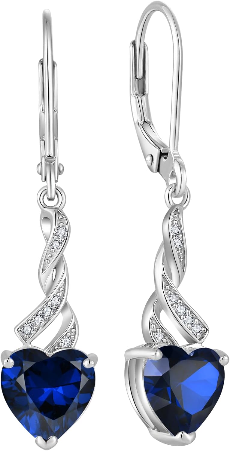 Women Heart Earrings 925 Sterling Silver Birthstone Swirl Twist Dangle Drop Earrings Cubic Zirconia for Her Birthday