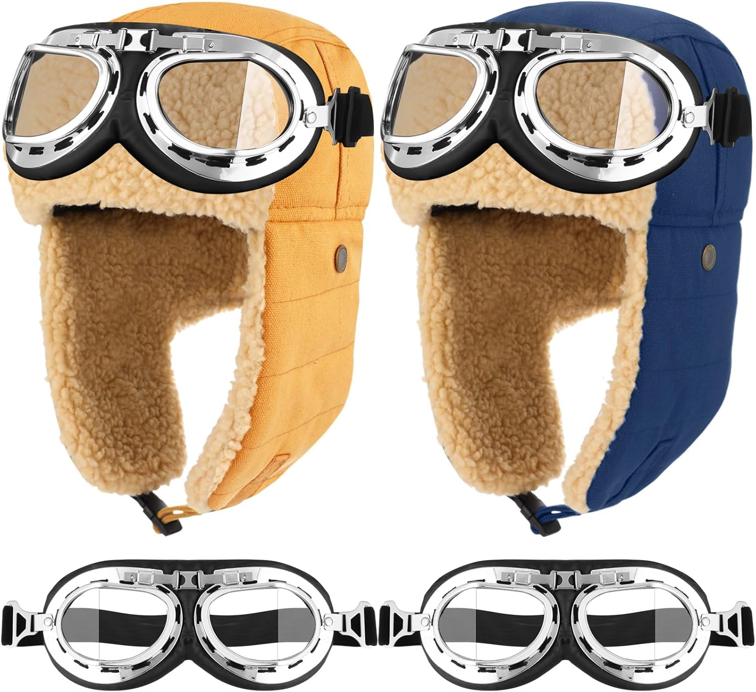 - What You Get: you will receive 2 sets of winter trapper hats with goggle in 2 colors, each comes with a pair of goggles; A total of 2 sets can keep you warm throughout the winter, and adds a vintage touch to your style