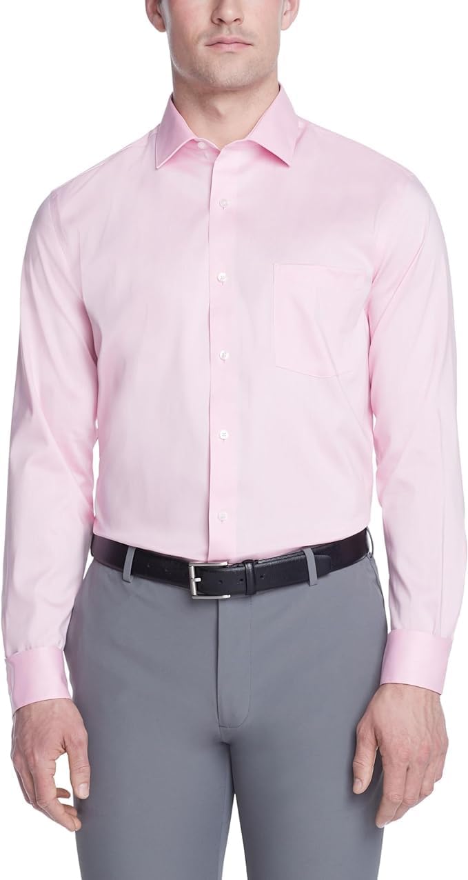 Van Heusen Men's Dress Shirt Regular Fit Ultra Wrinkle Free Flex Collar Stretch Solid, Rose, 14"-14.5" Neck 34"-35" Sleeve
